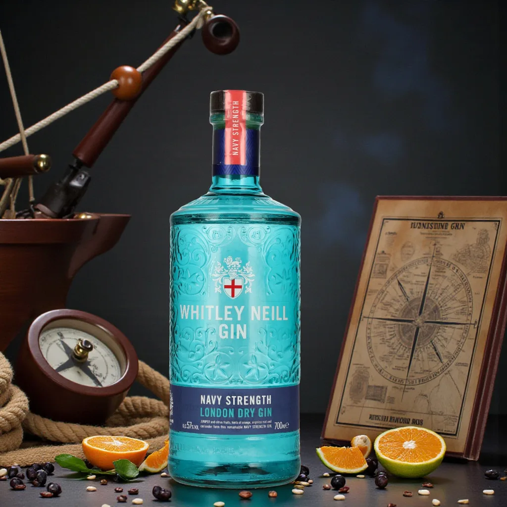 Au nez, Whitley Neill Navy Strength Gin dévoile une dominante de genièvre nette, soutenue par des zestes d’agrumes (citron, orange) et une trame d’épices douces aux accents poivrés, le tout sur un fond herbacé précis.