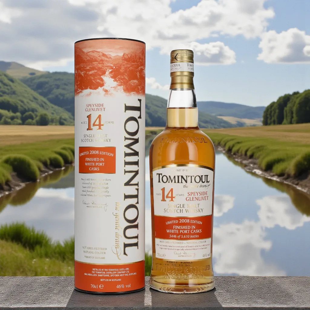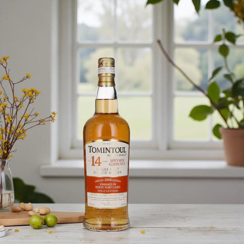 Au nez, fruits blancs et raisins frais dominent, soutenus par des accents de poire juteuse, de fleurs blanches et de miel léger. Une trame de vanille et de zeste d’agrumes apporte de la vivacité, tandis que des touches d’amande et de nougat arrondissent l’ensemble; Tomintoul 14 Ans – 2008 – White Port Casks s’exprime avec finesse sans exubérance.